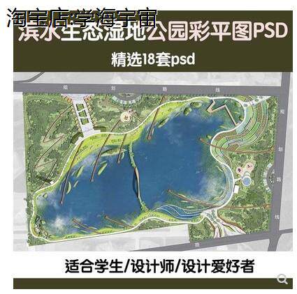 滨水湿地公园景观psd分层规划平面彩色图ps彩平图园林素材资料热门设计联盟服务商