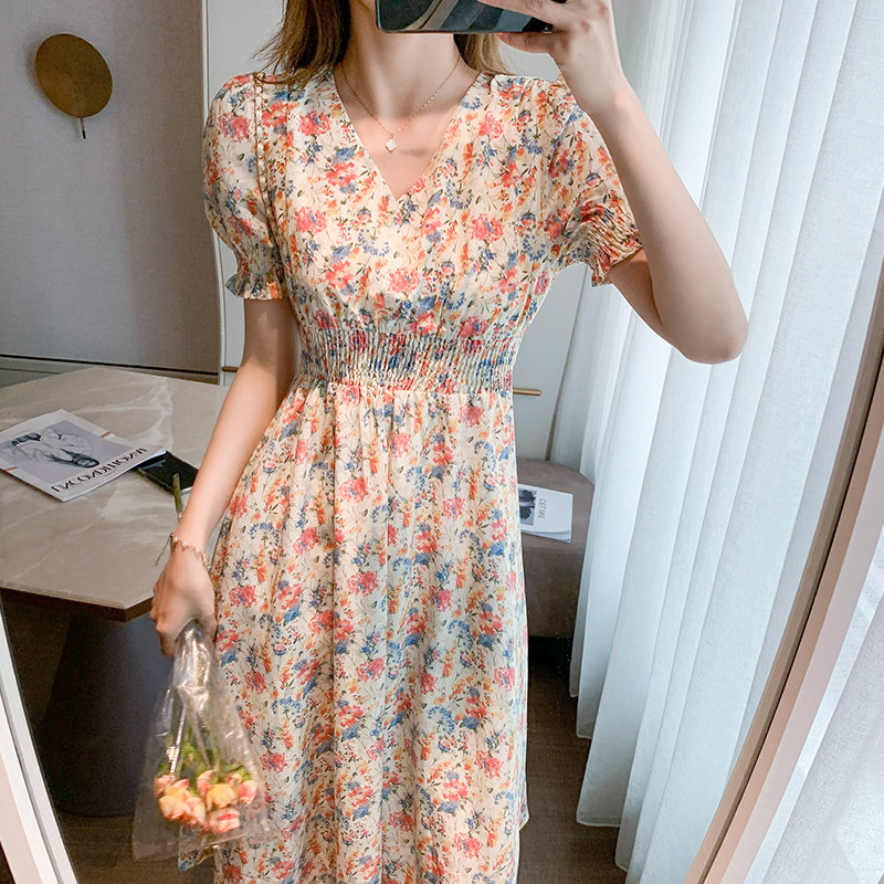 2021年春夏季新款短袖连衣裙女收腰设计感时尚气质甜美百搭仙女热门设计联盟服务商