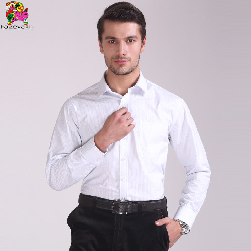 恒源祥集团彩羊中年男士纯色长袖衬衫宽松商务正装职业白衬衣热门设计联盟服务商