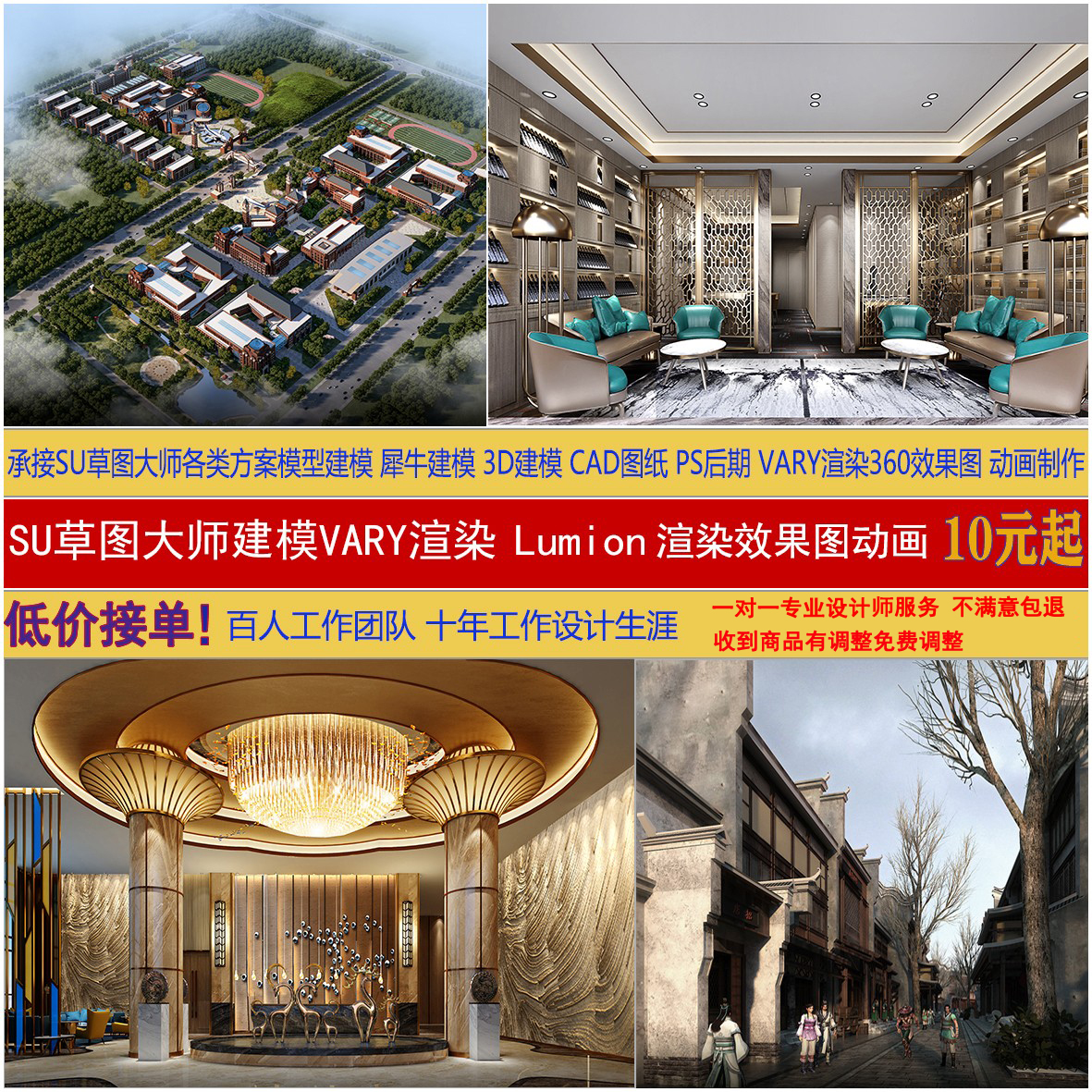 SU草图大师建模渲染代做Lumion效果图动画鸟瞰图代做ps彩平图沛