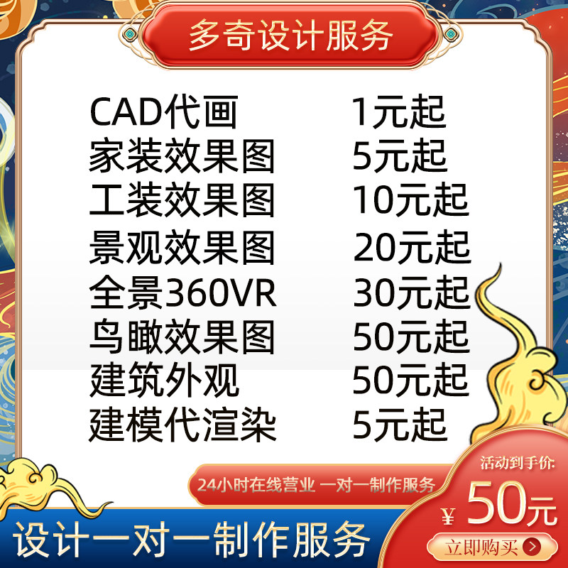 3D效果图制作家装工装设计园林景观鸟瞰施工图纸产品建模CAD代画